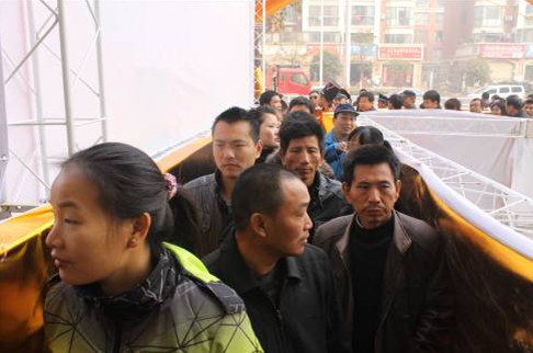 當天上午8時不到,聚仁·萬象都會臨時銷售中心門口已是人潮涌動,大批意向客戶早早就來此等候,他們當中有許多都是一家老小齊出動,顯然對此次購房非常看重。8時58分,選房活動正式開始,主持人采取搖號的方式進行開盤。每次搖出8組客戶,外圍購房者按照抽中的VIP號分批進內場進行選房,而內場選房區也是人頭攢動,頻頻傳出成交捷報。整個選房活動持續了大概3個多小時,從抽號、選房、到簽收、再到付款,開盤井然有序地進行著,大多數購房者都選到了心儀已久的房子。一位成交的客戶帶著交易合同從選房區出來時早已是滿臉笑容,她一邊急切地舉著手中的材料喊著家人過來分享,一邊打電話向之前引領她看房的置業顧問報喜,“買到了,買到了,買到了,就是我看中的那個房型,樓層也很好,太高興了!”