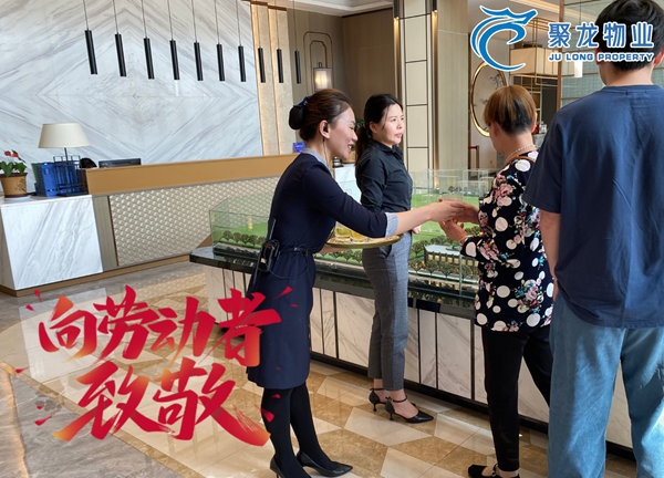“金三銀四紅五月”,“五一”向來是樓市傳統的熱銷節點。對于濱江悅城案場服務工作者來說,是最忙碌的時刻。為保障熱銷節點的順利進行,聚龍物業濱江悅城項目部全體員工,堅持在崗,用心用情做好案場服務,讓客戶感受如家般的溫暖,用堅守詮釋了物業人的勞動節。
