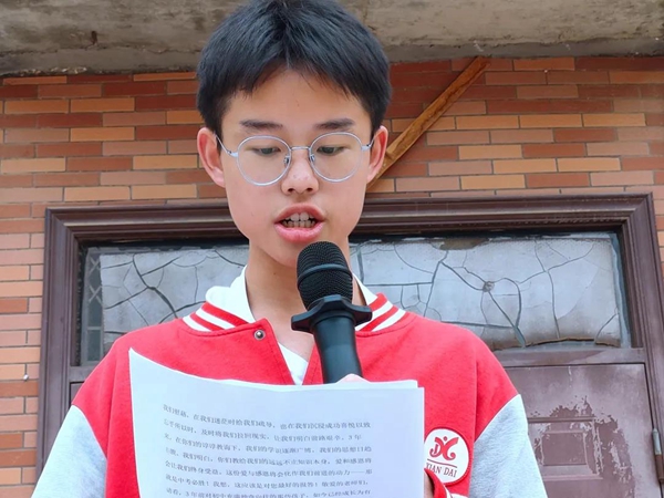龔凱作為初三畢業生代表上臺道出了他經歷了初一的純真年代,走過初二的輕舞飛揚,迎來初三的緊張忙碌,到現在依依惜別的種種感慨,表示會牢記母校的諄諄教導,升入高中后會努力學習,以優異的成績回報母校,感恩老師辛勤付出!最后,他決定帶著“樂善好學 健康卓越”校訓走上更高的舞臺,插上夢想的翅膀,展翅高飛!