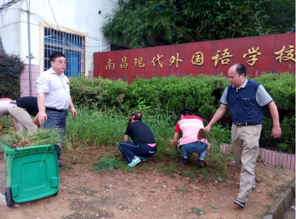 校園環境的好壞是家長對學校認識的第一印象。校辦公室在努力做好招聘老師、協助招生工作的同時,積極做好校園衛生工作。為提升學校的整體形象,楊校長還親自帶領行政處室人員頂著烈日,將校園內外的雜草拔除干凈,同時各學部校長也積極督促清潔工人,將本學部衛生包干區打掃干凈。