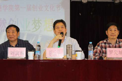 最后,第九屆全國創業之星獲得者、聚仁堂集團董事長、工商學院董事長胡樂平先生與師生們進行現場交流,向在師生們詳細介紹了創業四部曲——創業意識、創業理念、創業技能、創業實踐理論知識,并將其歸納提升為學院創業文化的豐富內涵與實質,讓在場的師生們深受啟發。同時,胡樂平董事長結合自身的創業經歷,與大家分享了其創業的歷程與艱辛,傳遞他創業成功的經驗與體會,鼓勵同學們勇敢地走出創業第一步。