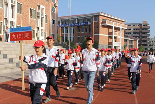 雄壯的《運(yùn)動(dòng)員進(jìn)行曲》奏響后,入場(chǎng)式開(kāi)始。走在最前面的是儀仗隊(duì)的同學(xué)們,他們手托國(guó)旗、校旗,手舉彩旗,氣宇軒昂,精神抖擻。隨后,各年級(jí)代表隊(duì)昂首闊步依次入場(chǎng),接受大會(huì)主席團(tuán)的檢閱。他們或高舉橫幅,或手持標(biāo)語(yǔ)牌,或齊呼口號(hào),表達(dá)著自己的信心與熱情。
