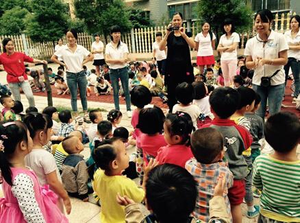 9月30日,為了迎接中華人民共和國65華誕,江西園外園幼兒園舉行了“愛祖國愛家長”慶國慶歌詠會。孩子們在老師的指揮下盡情放歌,大班組表演了《大中國》、《愛我中華》、《一二三四歌》、《聽媽媽講那過去的事情》、《國歌》、《我是小海軍》,中小班演唱了《祖國祖國多美麗》、《紅太陽照山河》、《我愛北京天安門》、《娃哈哈》、《頌祖國》。他們稚嫩的聲音和燦爛的笑臉表達了對祖國的熱愛,也迎來陣陣掌聲和歡呼聲。活動現場歌聲、笑聲、歡呼聲匯成了一片歡樂海洋。