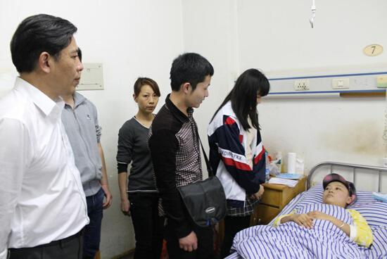 高中部校長朱才垂到醫院看望李玫同學