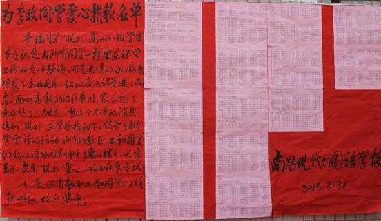 李玫,高一(4)班學生,年前突然暈倒,經南昌第一附屬醫院確診為急性髓系白血病。學校從家長處了解到,李玫需要進行骨髓移植,整個治療費用將達到50多萬元。經學校領導商議,特組織此次募捐活動,幫助李玫籌集治療費,同時表達學校對李玫及其家庭的關心。