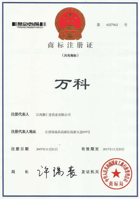在多年的生產(chǎn)經(jīng)營(yíng)中,聚仁堂藥業(yè)注重以品牌為主導(dǎo)、以客戶(hù)為先導(dǎo)、以質(zhì)量建品牌,積極培育和推廣企業(yè)自主知識(shí)產(chǎn)權(quán)的品牌,樹(shù)立了良好的企業(yè)和產(chǎn)品品牌形象。本次商標(biāo)證注冊(cè)的取得將為公司后續(xù)戰(zhàn)略發(fā)展布局提供有力的支持和保障,聚仁堂藥業(yè)將以仁義之心做中成藥為原則,建立起涵蓋藥品、保健品等產(chǎn)品和服務(wù)范疇的多元化商標(biāo)品牌體系,確立和推廣企業(yè)“健康”、“優(yōu)質(zhì)”的品牌宗旨和理念,以通過(guò)品牌效應(yīng)促進(jìn)企業(yè)新的跨越式健康發(fā)展。