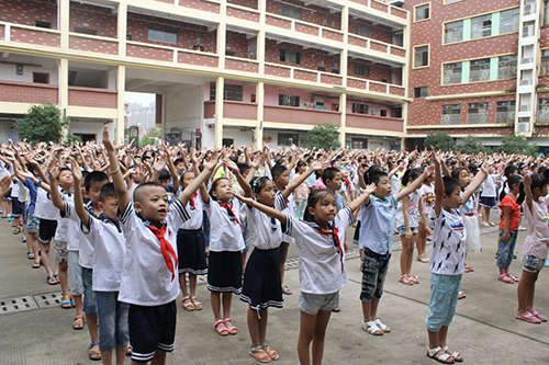 開學典禮上,在王桂紅主任的帶領下,全體學生莊嚴宣誓:愛國守法,明禮誠信、遵守公德、尊敬師長、團結同學、勤奮學習、快樂生活、全面發展。在響亮的宣誓聲中,不僅激發了全校學生的愛校熱情,同時也激發了同學們學習的使命感。