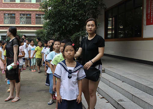 同學們在老師帶領下有序退場