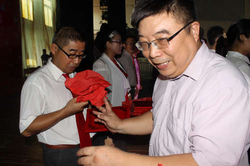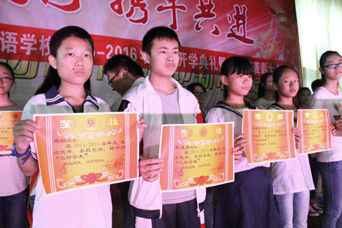 鄧校長宣布了優秀教師、先進工作者,文明之星,進步之星,優秀班干,三好學生名單,劉雁華等校領導為獲獎班級和個人頒獎并合影留念。