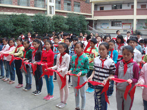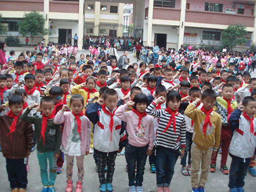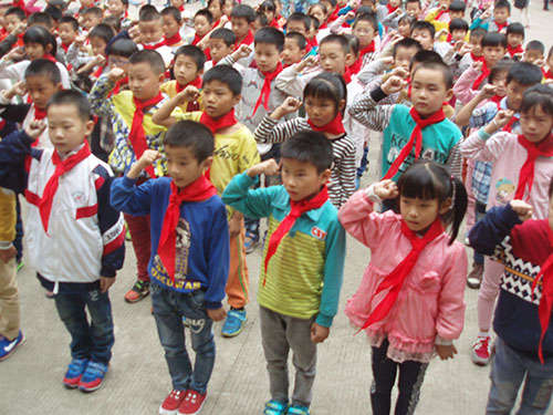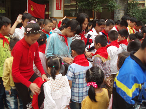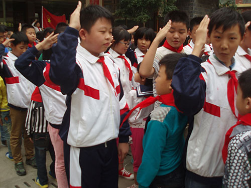 儀式上,首先,老隊員們鄭重地為新隊員系上鮮艷的紅領巾,互敬隊禮。面對隊旗,新隊員舉起右拳,莊嚴宣誓志愿加入中國少年先鋒隊,并高喊先鋒隊呼號“準備著,為共產主義事業而奮斗……”。隨后,大隊輔導員重溫了少先隊的發展歷史,向新隊員提出了希望和要求,勉勵他們爭做一名優秀的少先隊員,嚴格規范自己的行為,努力學習,團結協作。最后,新隊員們紛紛表示,要從現在做起,從身邊的點滴小事做起,為紅領巾增光添彩。