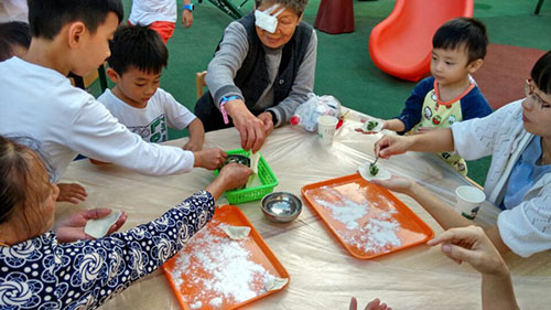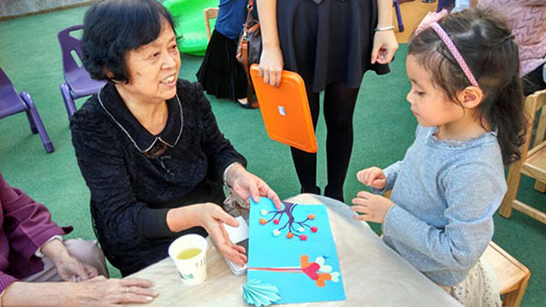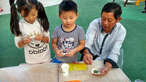 活動期間,孩子們為自己的爺爺奶奶表演了自己精心準備的的歌舞節目,把自己親手制作的賀卡交給了自己的爺爺奶奶并湊在他們耳根旁說上一句祝福的悄悄話,親手為自己的爺爺奶奶端上一杯熱氣騰騰的菊花茶,剝一片桔子,送上一塊重陽糕,和爺爺奶奶們一塊包餃子、品嘗餃子,濃濃的愛意,溫馨的氣氛在幼兒園中彌漫。