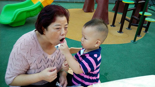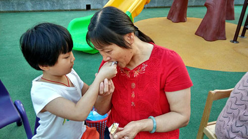 孩子給爺爺奶奶們喂重陽糕(二)