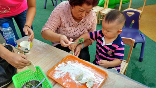 孩子和爺爺奶奶一起包餃子(一)