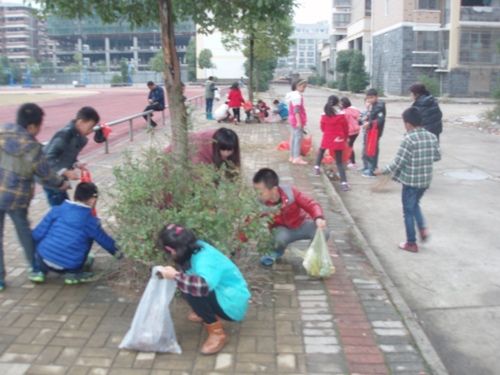 各班學(xué)生在班主任的帶領(lǐng)下,來到事先分配好的勞動地點,迅速地投入到了熱火朝天的勞動中。校園內(nèi)到處都是老師和學(xué)生們忙碌的身影。他們手拿掃把、鐵鍬、火鉗、塑料袋、抹布、桶子等勞動工具,積極參與勞動,大家不怕臟,不怕累,都埋頭奮力拔草,掃地,清理垃圾,擦洗扶梯……。同學(xué)們有的手上扎了小刺,有的被泥土弄臟了衣服和鞋子,有的流出汗水,但是沒有一個人叫苦喊累。經(jīng)過半個多小時的勞動,校園內(nèi)的綠化帶、小樹中的石塊兒、垃圾、枯葉以及校園內(nèi)衛(wèi)生死角得到了徹底的清理,到處煥然一新。