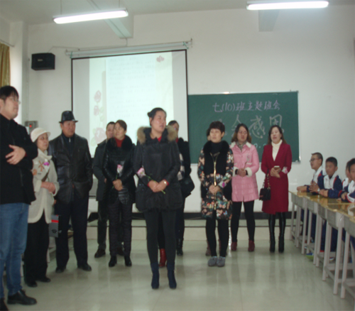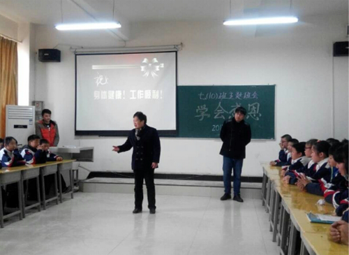 隨著獻(xiàn)花過(guò)程的結(jié)束,班會(huì)來(lái)到了第三個(gè)環(huán)節(jié):感恩青春季。此環(huán)節(jié)中,涂章宇同學(xué)講了關(guān)于羅斯福感謝小偷的故事,告訴同學(xué)們要常懷感恩之心。接著,全體同學(xué)用手語(yǔ)演唱《感恩的心》,以表達(dá)對(duì)長(zhǎng)輩、父母、老師、朋友、身邊每一個(gè)幫助過(guò)自己的人的感恩之情。表演過(guò)后,吳加亮老師做出總結(jié),感謝校領(lǐng)導(dǎo)、年級(jí)組老師、家長(zhǎng)的幫助與支持,希望同學(xué)們學(xué)會(huì)感恩,做一個(gè)心中有愛(ài)的人。最后,陳勇鋒校長(zhǎng)總結(jié)講話,給予了此次班會(huì)很高的評(píng)價(jià),祝愿七(十)班有一個(gè)美好的明天。
