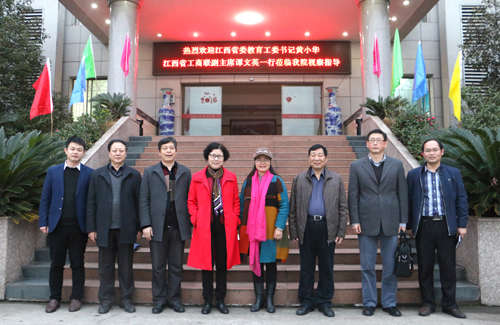 2016年1月4日下午,江西省委教育工作委員會(huì)書記黃小華、江西省工商聯(lián)副主席譚文英一行人蒞臨工商學(xué)院視察工作。學(xué)院董事長(zhǎng)胡樂(lè)平、副董事長(zhǎng)劉雁華、學(xué)院黨委書記劉富林等陪同視察。