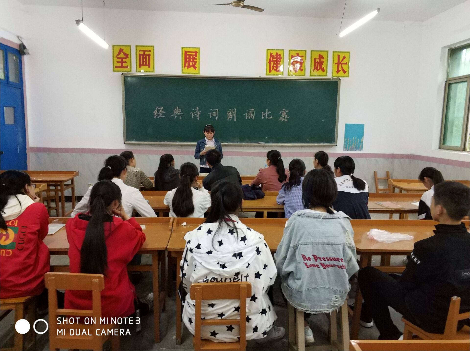 決賽現場,選手們以其鏗鏘有力的氣勢充沛飽滿的感情,自信大方的形象贏得老師和同學們的陣陣掌聲。比賽的內容和形式更是豐富多樣,有的朗讀千古傳誦的名篇,讓我們用精簡的語言解讀古人;有的朗誦思鄉篇,讓我們一起懷念故鄉;有的歌頌青春,引導同學們追求青春,勇敢拼搏。吟誦者,帶領著我們走進詩人的心田。去領悟詩人心中的感情。