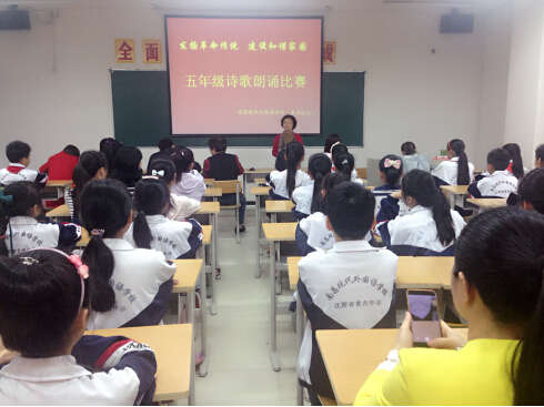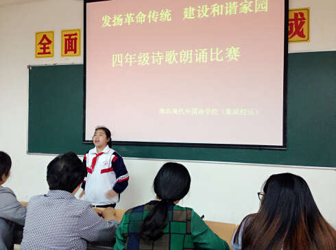 為進一步加強學校文化建設,陶冶學生的情操,營造朝氣蓬勃、積極向上的校園文化氛圍,南昌現代外國語學校(象湖校區)在多媒體教室成功舉辦了以 “發揚革命傳統,建設和諧家園”為主題的詩歌朗誦活動。