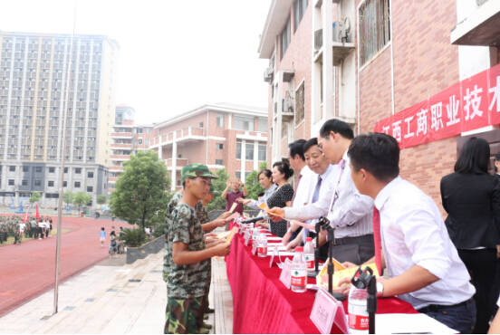 11日上午,江西工商職業技術學院2016年新生軍訓閉營儀式暨新學期開學典禮在莊嚴的國歌聲中拉開帷幕。首先由黨委書記劉富林向各位教官隊長授旗并致辭,他代表學院黨委向2016級新生的到來表示熱烈歡迎,對10天來各位教官、同學以及老師的辛勤付出給予了充分肯定。他指出,軍訓是同學們來到新學校的第一課,對培養同學們的集體觀念和奮斗意識具有重要作用,希望同學們能夠積極主動適應新校園新生活,遵守學院的各項規章制度,在大學生活中開闊眼界,積累知識,成長為適應經濟發展,適應社會需要的棟梁之才,并預祝本次會操表演圓滿成功。