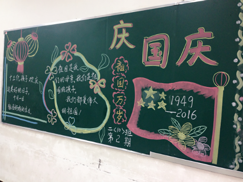 為隆重慶祝祖國67歲的生日,讓學生了解新中國成立60多年來發生的翻天覆地的變化,進一步增強學生的愛國主義情感,9月30日,南昌現代外國語學校(象湖校區)舉行了以“迎國慶、頌祖國”為主題的黑板報比賽。