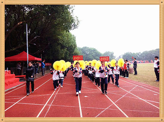 最先入場的是小學部的同學,在班主任的帶領下,他們服裝統一,揮舞著手中五彩的道具,各個臉上洋溢著開心的笑容。他們雖然年紀小,但走起方陣來卻非常的有氣勢。