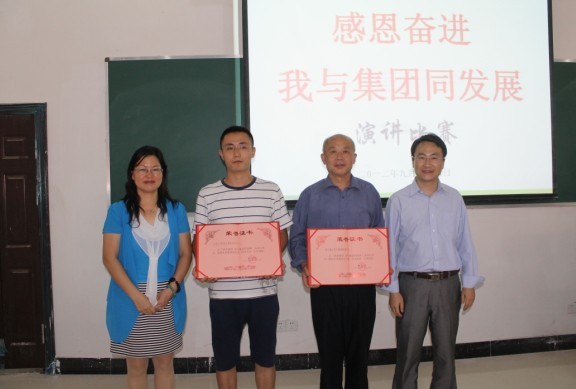 集團(tuán)副董事長劉雁華為一等獎(jiǎng)獲得者頒發(fā)證書及獎(jiǎng)金