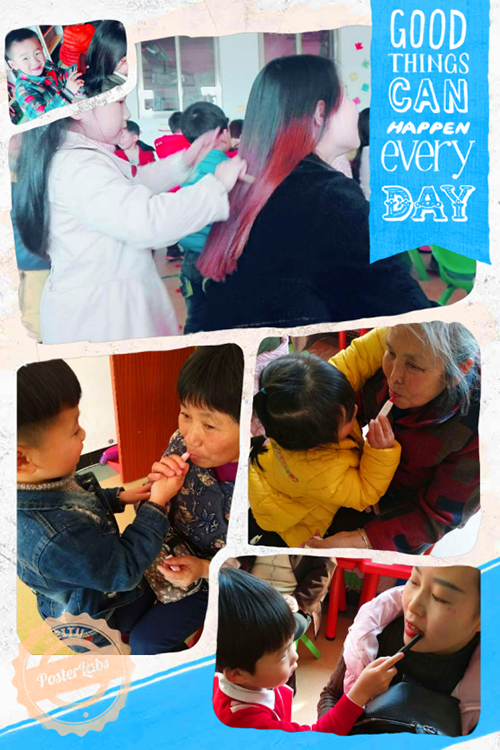“平日里,奶奶、外婆、媽媽照顧我可辛苦了,今天就讓我來為你們服務,因為我已經長大了,可以孝敬你們了!”活動當天,孩子們和家長其樂融融,為了感恩自己的親人,孩子們用他們稚嫩的小手,給她們按摩、涂唇膏、梳頭發……還一起玩起了親子游戲,不僅增進了親情,也讓孩子們記住了這個有意義的日子。