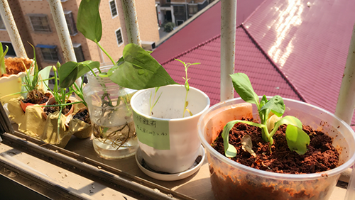 活動中,同學們積極踴躍舉手,上臺介紹自己種植的綠色植物,并講述它們的生長過程和對環境產生的深遠影響。有的同學介紹自己種的青菜,從買種子到長大,這期間她傾注了滿滿的愛;有的同學用雞蛋殼和廢紙盒做成盆,種上了花;還有位同學介紹自己養的綠蘿,具有優先吸附甲醛、苯、TVOC等有害氣體的特點,能達到凈化室內空氣的效果……同學們接二連三講述著自己種的植物,滿臉充滿成就感?;顒咏Y束后,所有的綠色植物都留在教室內,教室因綠色植物變得溫馨且富有活力。