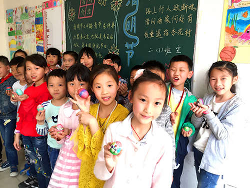 “繪彩蛋”是孩子們最喜歡的活動之一。美術課上,老師們介紹了清明節的來歷、風俗習慣和紀念意義,讓學生增長歷史知識,并結合美術教學,指導學生繪彩蛋,學習彩蛋藝術。孩子們興致勃勃地在各自帶來的熟雞蛋上作畫,他們用靈巧的雙手把一個個雞蛋描繪成五顏六色、創意豐富的彩蛋作品,美麗的圖案象征著圓圓滿滿,充分體驗傳統民俗樂趣。