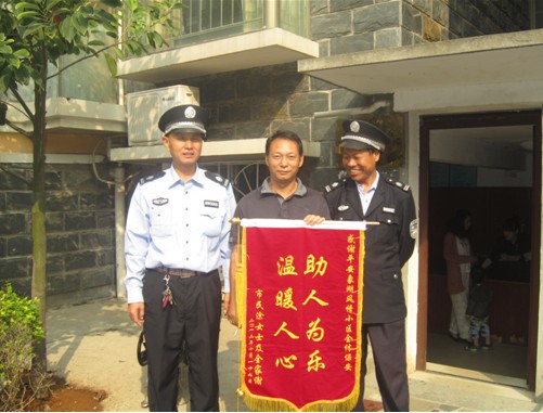 10月21日,平安·象湖風情小區36棟3單元302室業主涂女士及家人高高興興來到聚龍物業管理處,將一面鮮艷的錦旗送到物業安防部領導手中,衷心感謝物業保安樂于助人的奉獻精神。錦旗正中寫著八個大字:“助人為樂,溫暖人心。”