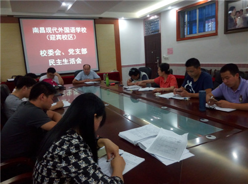 為進一步抓好學校管理和發展工作,不斷增強領導班子發現和解決問題的能力,2017年6月9日晚上,南昌現代外國語學校迎賓校區校委會、黨支部成員在行政二樓會議室召開了民主生活會。會議由校長楊端煌主持。本次會議主題是——批評與自我批評。