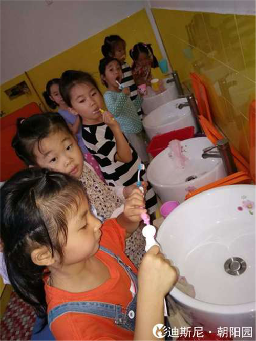 寶貝們在老師的指導下,開始認真洗漱。