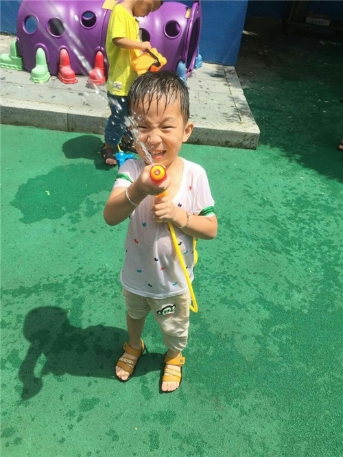 這次的活動(dòng)雖然時(shí)間不長,但是孩子們的收獲卻特別大,首先是快樂伴隨始終,在整個(gè)游戲過程中,老師聽到最多的就是孩子們的歡快的笑聲,所有小朋友全身心地投入到游戲的過程中,時(shí)不時(shí)地為打退別人的進(jìn)攻而興奮的歡呼。快樂的水槍大戰(zhàn)為炎炎夏日帶來了清涼,也為孩子們的童年留下了美好的回憶。