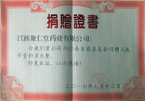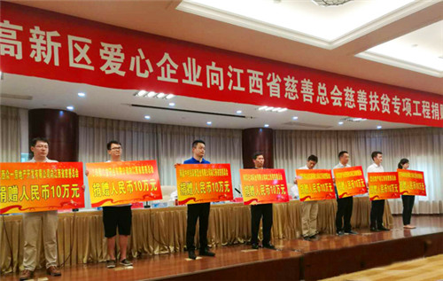 7月12日上午,江西聚仁堂藥業(yè)有限公司應(yīng)邀參加了南昌高新區(qū)管委會舉行的特殊的愛心捐贈儀式,省慈善總會會長洪禮和,省慈善總會副會長謝碧聯(lián)、蔡社寶、姚迪明、朱和平,南昌市市政府秘書長吳長金,南昌高新區(qū)管委會領(lǐng)導(dǎo)黃俊、劉德輝、姜玉林,出席了捐贈儀式,并向捐贈單位頒發(fā)榮譽(yù)證書。聚仁堂藥業(yè)有限公司作為23家愛心企業(yè)之一,向“善濟(jì)江西 脫貧攻堅(jiān)”慈善扶貧專項(xiàng)工程捐款10萬元。