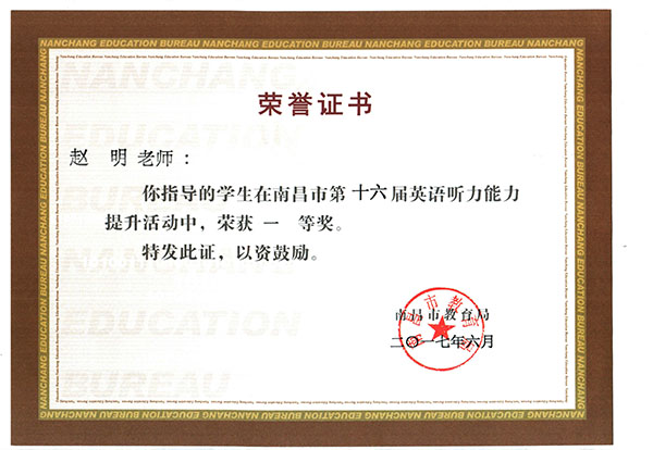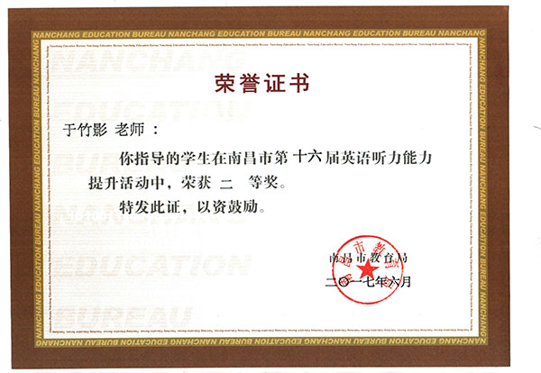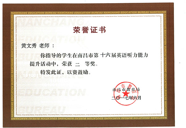 近日,在南昌市第十六屆英語(yǔ)聽(tīng)力能力提升活動(dòng)中,南昌現(xiàn)代外國(guó)語(yǔ)學(xué)校迎賓校區(qū)4名教師、高二、高三學(xué)生共計(jì)10名學(xué)生在活動(dòng)中取得了優(yōu)異成績(jī)。