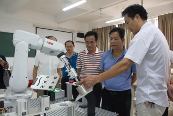 會后,院長劉明初等領導陪同江西科技職業學院董事長萬榮生一行參觀了護理系實訓樓、機電工程系實訓室、教育科學系實訓樓、學生食堂等。