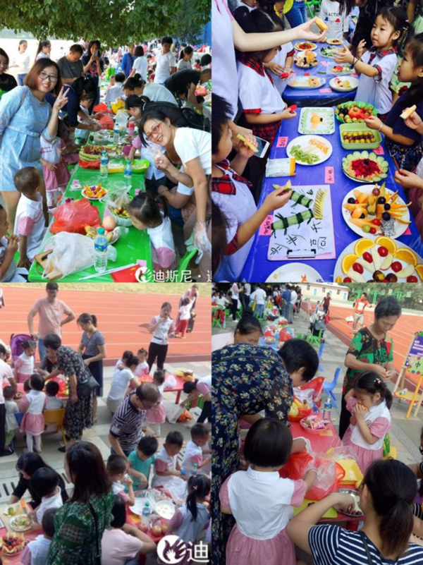 瓜果飄香的金秋,9月30日上午,為了讓孩子們感受中秋和國慶的氣氛,增進親子之間的感情,江西迪斯尼·迎賓園開展了主題為“雙節(jié)同慶暖人心 水果拼盤聚溫情”親子DIY活動,讓天真爛漫的孩子們與絢麗多彩的水果來了一次親密接觸。