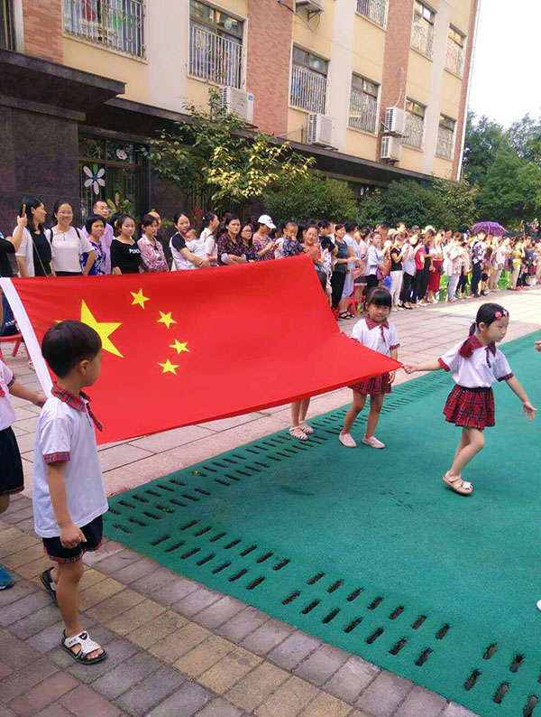 活動由兩部分組成,第一部分為各班級為祖國媽媽唱紅歌比賽,當一切準備就緒,中班以及大班的孩子隊列整齊,踏步進場。主持人段老師像大家介紹了今天的活動主題,接著楊園長為孩子們送上了節日祝福。在慷慨激昂的進行曲襯托下,可愛的小護旗手,走著正步向大家走來,并進行了莊重的升旗儀式,國歌聲中,孩子們個個直立,行注目禮,高唱國歌。第二部分是中秋美食分享會,活動前各班家長都制作出了品種多樣、味道鮮美的食品。各種美食琳瑯滿目,有蛋撻、果凍布丁、蔬菜沙拉、水果拼盤、可樂雞翅、啤酒燒鴨、小豬肉包、韓國壽司等,色香味俱全。食材的準備都來自班里的家長,大家可以憑著美食券到各個美食坊挑選自己喜歡的食物進行品嘗。
