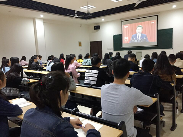 習(xí)近平總書記從“過去五年的工作和歷史性變革”、“新時(shí)代中國共產(chǎn)黨的歷史使命”、“新時(shí)代中國特色社會主義思想和基本方略”、“決勝全面建成小康社會,開啟全面建設(shè)社會主義現(xiàn)代化國家新征程”、“貫徹新發(fā)展理念,建設(shè)現(xiàn)代化經(jīng)濟(jì)體系”、“健全人民當(dāng)家作主制度體系,發(fā)展社會主義民主政治”、“堅(jiān)定文化自信,推動社會主義文化繁榮興盛”等十三個(gè)方面做了重要報(bào)告。報(bào)告中關(guān)于教育與民生的內(nèi)容,受到廣大師生的關(guān)注。如“推動城鄉(xiāng)義務(wù)教育一體化發(fā)展,高度重視農(nóng)村義務(wù)教育,辦好學(xué)前教育、特殊教育和網(wǎng)絡(luò)教育,普及高中階段教育,努力讓每個(gè)孩子都能享有公平而有質(zhì)量的教育。完善職業(yè)教育和培訓(xùn)體系,深化產(chǎn)教融合、校企合作。加快一流大學(xué)和一流學(xué)科建設(shè),實(shí)現(xiàn)高等教育內(nèi)涵式發(fā)展。健全學(xué)生資助制度,使絕大多數(shù)城鄉(xiāng)新增勞動力接受高中階段教育、更多接受高等教育。支持和規(guī)范社會力量興辦教育。加強(qiáng)師德師風(fēng)建設(shè),培養(yǎng)高素質(zhì)教師隊(duì)伍,倡導(dǎo)全社會尊師重教。辦好繼續(xù)教育,加快建設(shè)學(xué)習(xí)型社會,大力提高國民素質(zhì)。”在師生中引起廣泛共鳴,深切感受到習(xí)近平總書記對民生的關(guān)注,對教育的關(guān)心,對師生的關(guān)懷,對助學(xué)的支持。