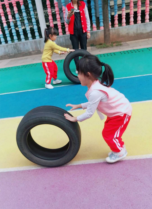 因此,江西迪斯尼·金沙園每周一都會開展陽光體能課,小朋友們每周都會接觸不同的幼兒體育健身器具。今天的陽光體能課主題是運動輪胎,寶貝們利用輪胎進行搬運接力,穿越輪胎,跳躍輪胎等體能項目,寶貝們都表現的很活躍。個別小朋友剛開始的時候,可能由于沒有這么近距離的接觸過輪胎,有點不知所措,就只是傻傻的站在旁邊,通過體能老師的示范表演后,都慢慢開始嘗試著玩耍。小朋友們通過和其他小朋友的互動,表現得越來越好,所有的體能項目都完成的很好,每個小朋友都綻放出燦爛的笑容。