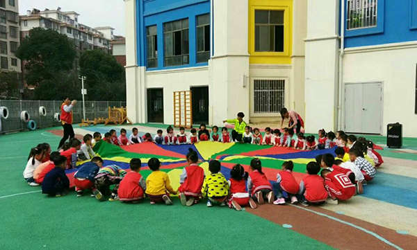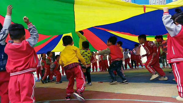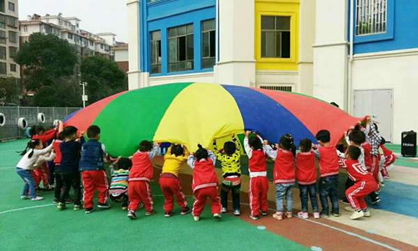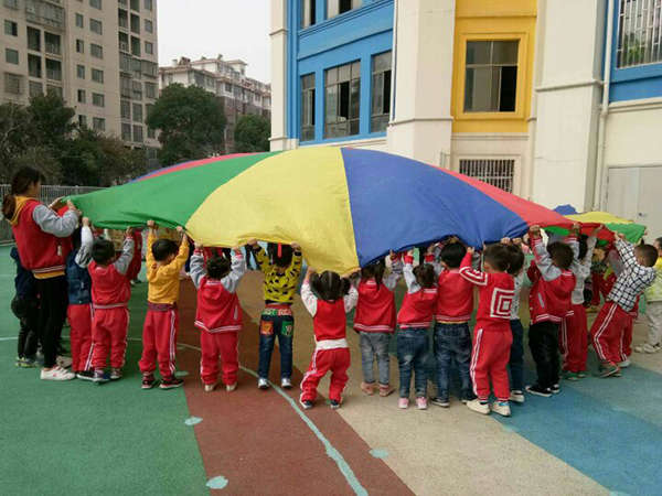 10月23日上午,又到了江西迪斯尼·象湖園孩子們最愛上的體育課,這一次旺仔老師帶來了《好玩的彩虹傘》主題體能課,彩虹傘的玩法多種多樣,如鍛煉跑跳能力的“拉個圓圈走走”,增強手部、腿部力量的游戲。鍛煉動作協調性和靈敏性的“海底捉小魚”,適合進行團體游戲的“蒙古包”,可以將彩虹傘拋上拋下鍛煉躲閃能力,還可以跳傘、轉傘、抓傘……訓練幼兒走、跑的基本動作,感受集體活動的快樂的“人體山洞”。