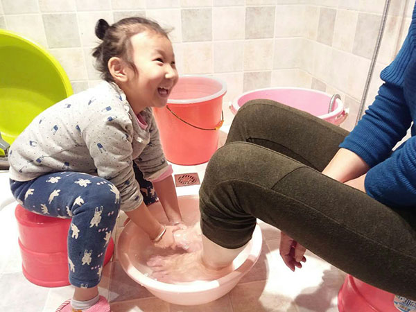 中、大班級的老師根據幼兒特點設計了豐富的活動方案,有的為老人唱敬老歌曲,有的玩祖孫親子游戲,有的組織孩子為老人制作愛心禮物……小班孩子們為爺爺奶奶捶背、揉腿、唱歌,引來爺爺奶奶們陣陣歡笑。看著一個多月前來園還哭哭啼啼的寶貝們變得那么乖巧,老人們感慨萬分,在欣慰的同時,對老師們耐心細致的工作也給予了肯定。
