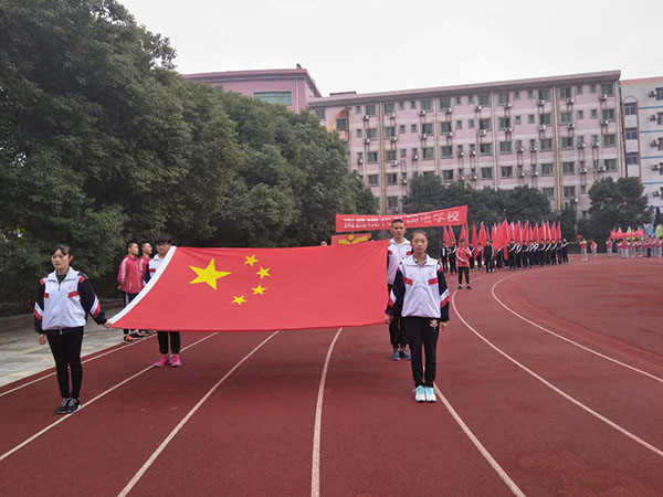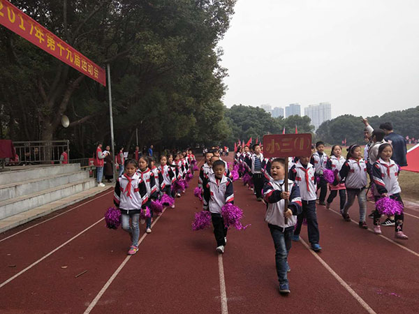 在莊嚴肅穆的升旗儀式結束后,楊校長為開幕式致辭。他指出,體育工作是建設文明校園的重要內容,不僅能夠強健體魄,形塑身體,而且能夠培養健全的人格,鍛煉我們的意志,激發我們的進取意識和創新活力,促進學生的全面發展。一直以來,學校高度重視體育工作,認真實施國家體育鍛煉標準,鼓勵開展多種形式的體育健身活動,豐富體育賽事,完善體育設施,促進健康體育理念融入師生日常生活的學習過程,推動體育健身生活化、普及化、科學化。他希望廣大師生都能參與到本次運動會,繼承發揚體育精神,永不放棄,頑強拼搏,奮勇爭先。他希望全校師生以運動會為契機,全面貫徹黨的十九大的教育方針,落實立德樹人根本任務,發展素質教育,培養德智體美全面發展的社會主義建設者和接班人。共建“和諧校園”,促進孩子們平安、快樂、健康成長。
