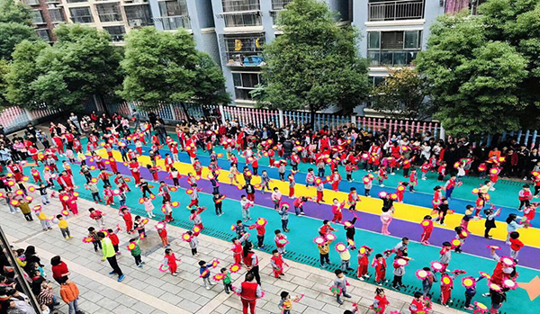 教師、小朋友分別進行了精彩的開場舞表演。楊園長宣布春季親子運動會開始。