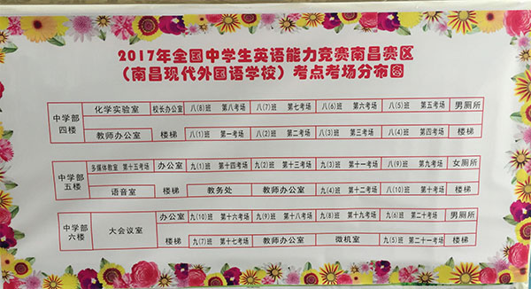 11月12日,2017年全國中學生英語能力競賽(NECPS)初賽南昌賽區在我校舉行,來自來自多校600多名學生參加考試。作為本次初賽的考點之一,我校領導高度重視此項工作,從監考教師的配備到橫幅及考場指示牌、考點分布圖的溫馨提示,都做好了充分的準備。考前,學校組織全體考務人員進行了培訓。在各部門的通力配合下,各考場布置嚴肅規范,很好地完成了考場布置等工作。