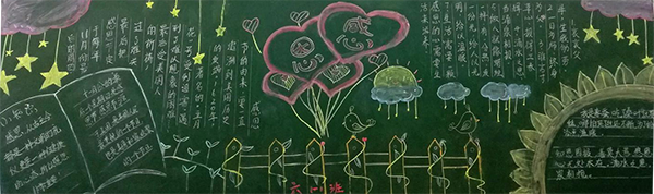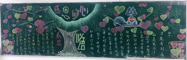 本次活動引起了學校全體師生的高度重視,活動中,全校師生積極響應,大家熱情高漲、積極主動,紛紛為張羅黑板報評比活動而忙碌了起來。在老師的指導下,同學們相互配合、團結協作,圍繞主題對本次黑板報進行了認真的構思,精心的設計,一塊塊主題鮮明、色彩和諧、各具特色的黑板報很快便設計了出來。同學們通過參與,懂得了感恩的重要,懂得了怎樣去感恩別人,學會了對父母、學校、社會心懷感激之情,為校園文化增添了一道亮麗的風景線。