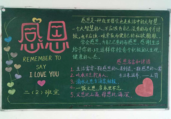 二、開展“學會感恩,讓愛同行”為主題的黑板報評比