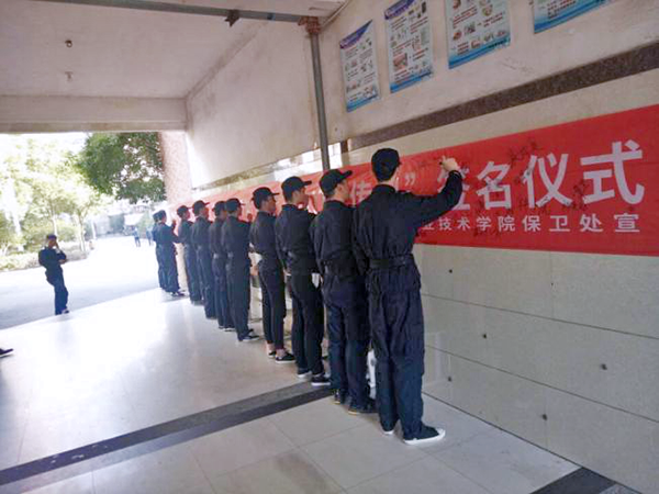 11月9日上午,十幾名校衛隊員,穿著整潔的作訓服,列隊站立在簽名活動橫幅邊上維持秩序,學院領導在百忙中來到活動現場參加簽名活動;為了讓消防宣傳達到更好的效果,學院讓廣大師生參與消防安全簽名儀式。
