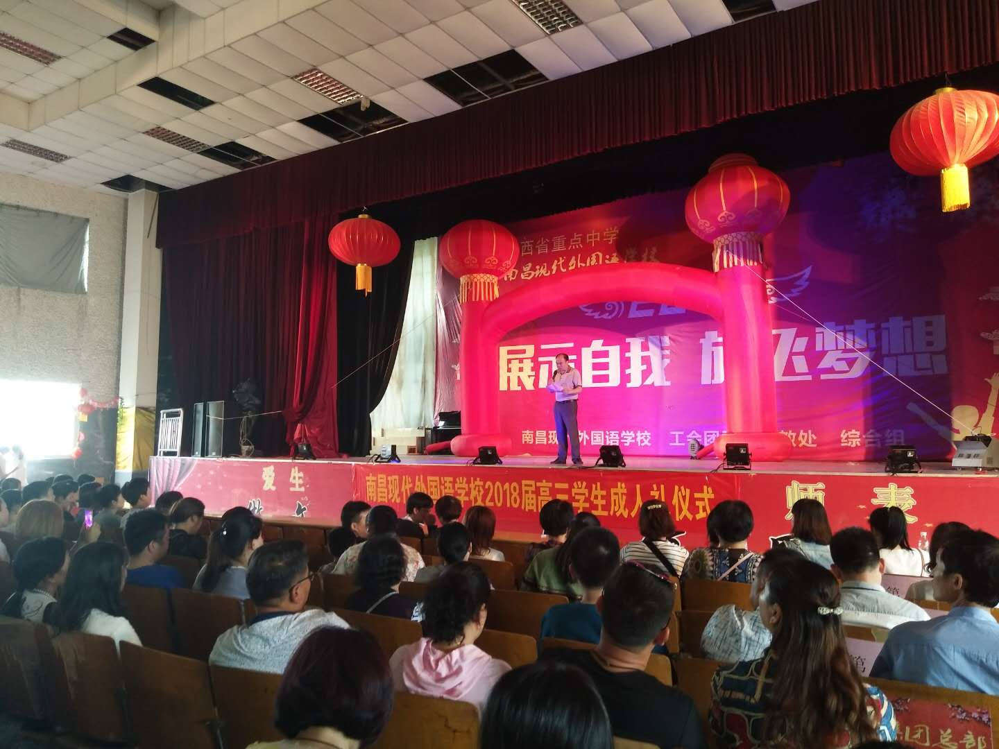 以“青春勇擔重任,責任成就夢想”為主題的南昌現代外國語學校2018屆成人禮活動,5月14日下午2:30在學校演播大廳隆重舉行。高三全體師生及家長齊聚學校演播大廳,迎接這神圣的一刻。學校楊端煌校長、小學部涂玉萍校長、高中部王文群主任、高三年級組