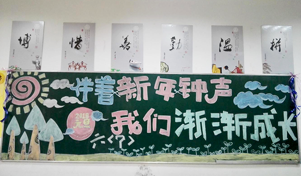 此次的“慶元旦,迎新年”黑板報成為了我校亮麗的風景線。它不僅豐富了同學們的課余生活,展示了同學們的風采,還為校園增添了節日的氣氛,同時預示著我校全體師生將以嶄新的面貌迎接2018年元旦的到來。